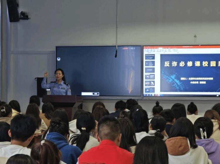 近年来,越来越多的电信网络诈骗将目标人群瞄准在校大学生,电信网络诈骗、网贷(校园贷)等多种形式的诈骗案件在高校中时有发生。为有效遏制当前严峻的电信诈骗犯罪高发势头,提高同学们防范电信诈骗的意识,加强自身反诈识诈的能力,全力维护校园网络治安稳定,2023年10月10日,永利官网邀请到太原市公安局小店分局的优秀反诈讲师雷雅妮警官,为3044am永利集团3044noc全体大一同学开展反电信诈骗讲座,普及电信诈骗相关知识。
